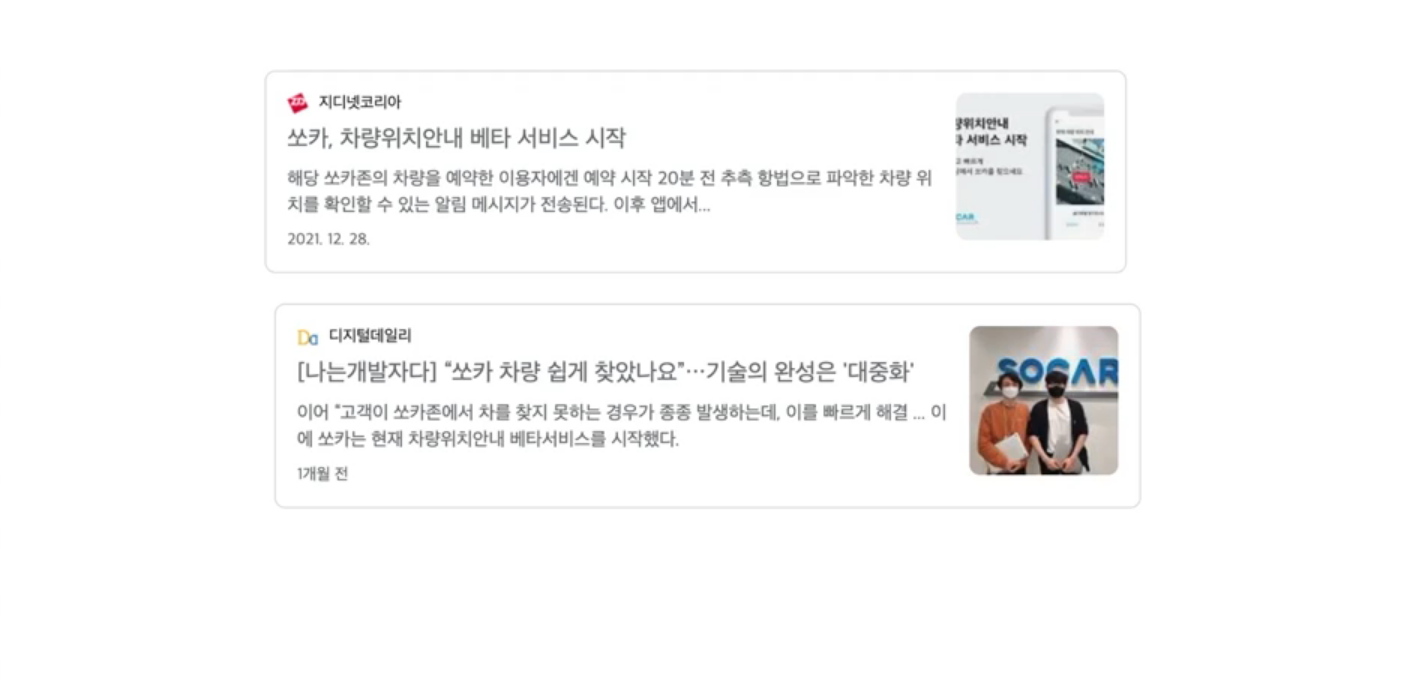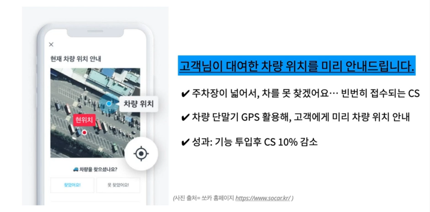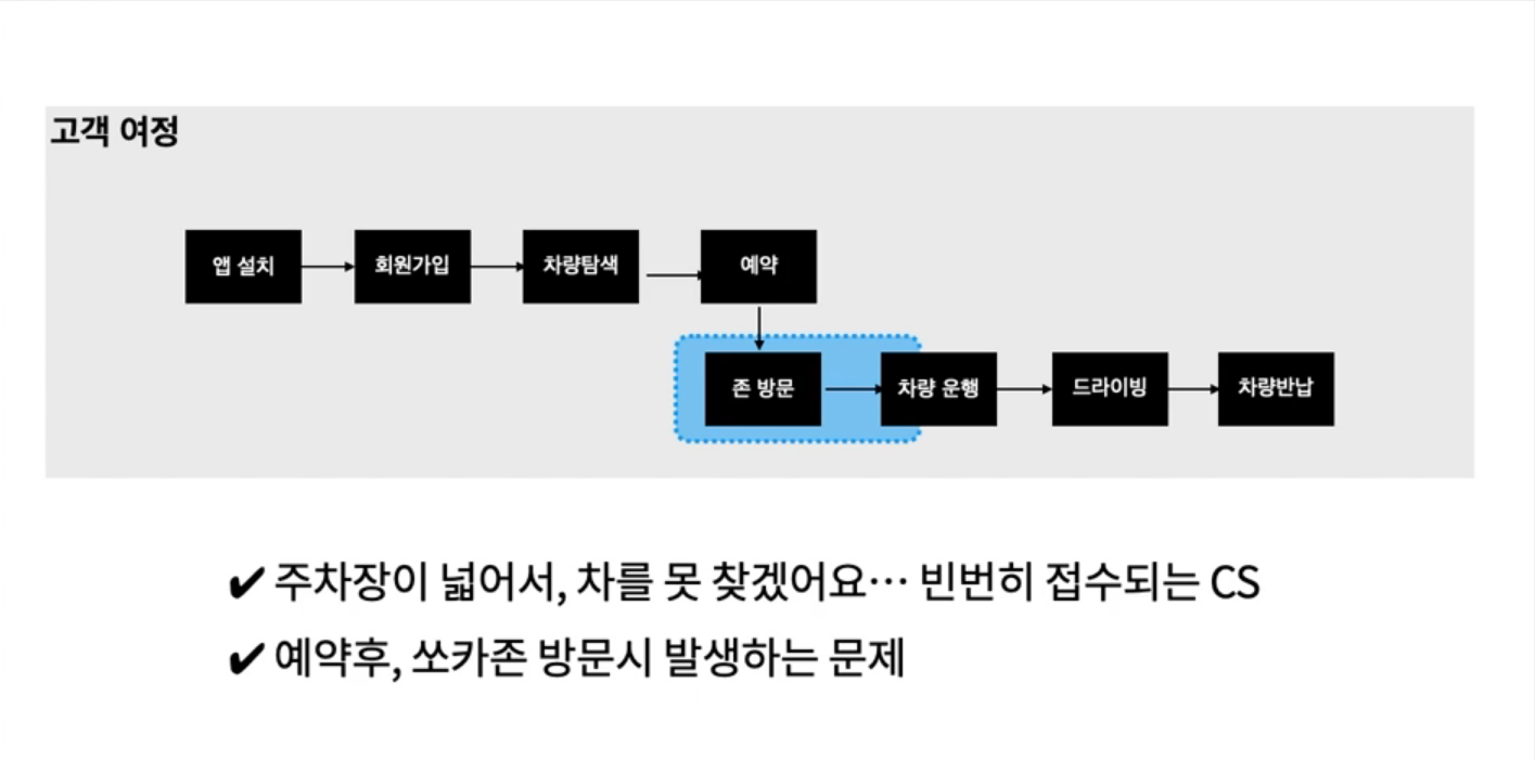 - 모바일 앱 외에도 접점이 존재함 ex.) 쏘카존, 쏘카 차량 내 네비게이션 등